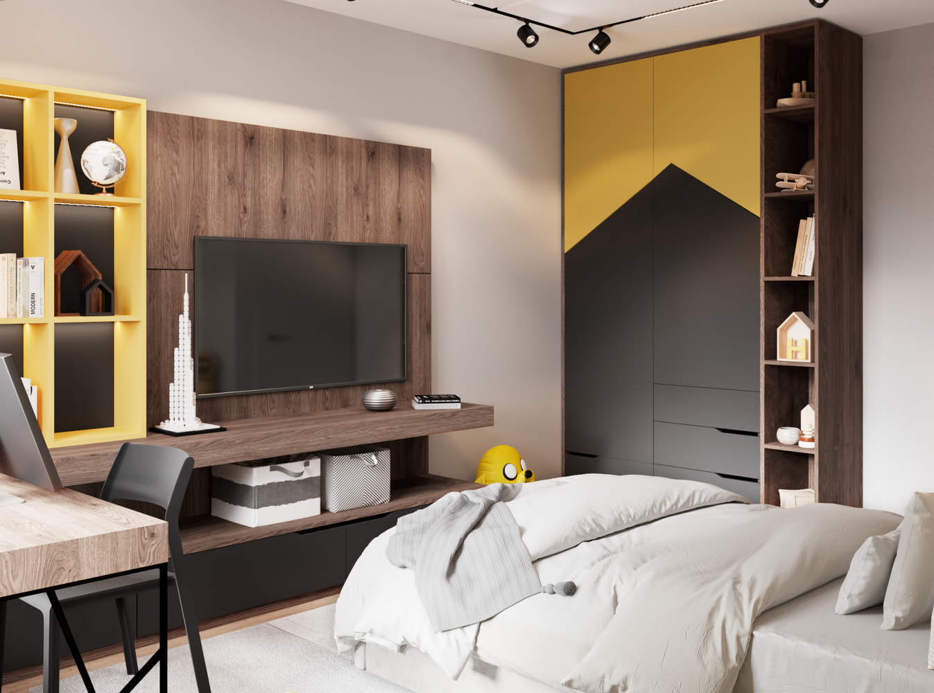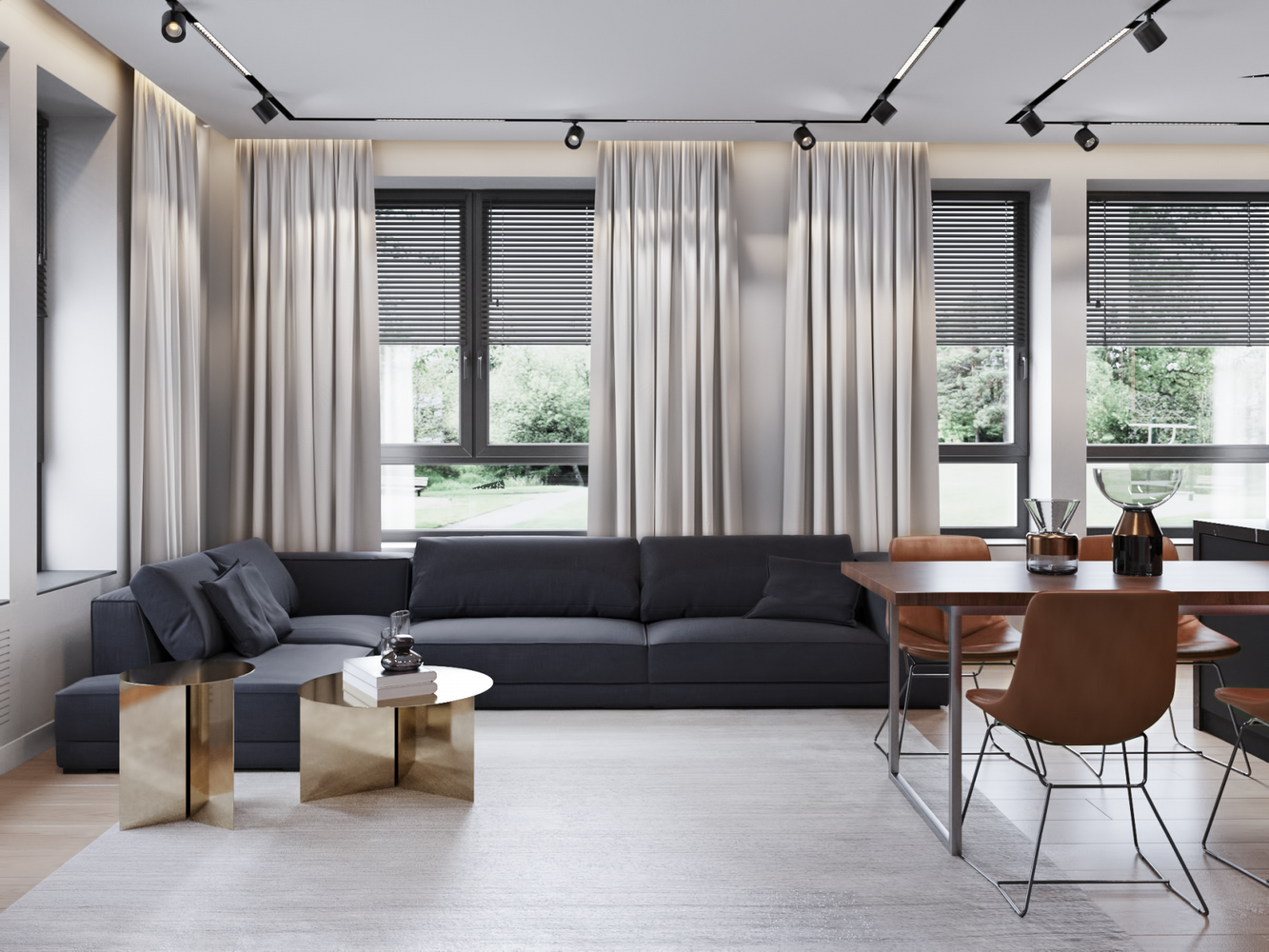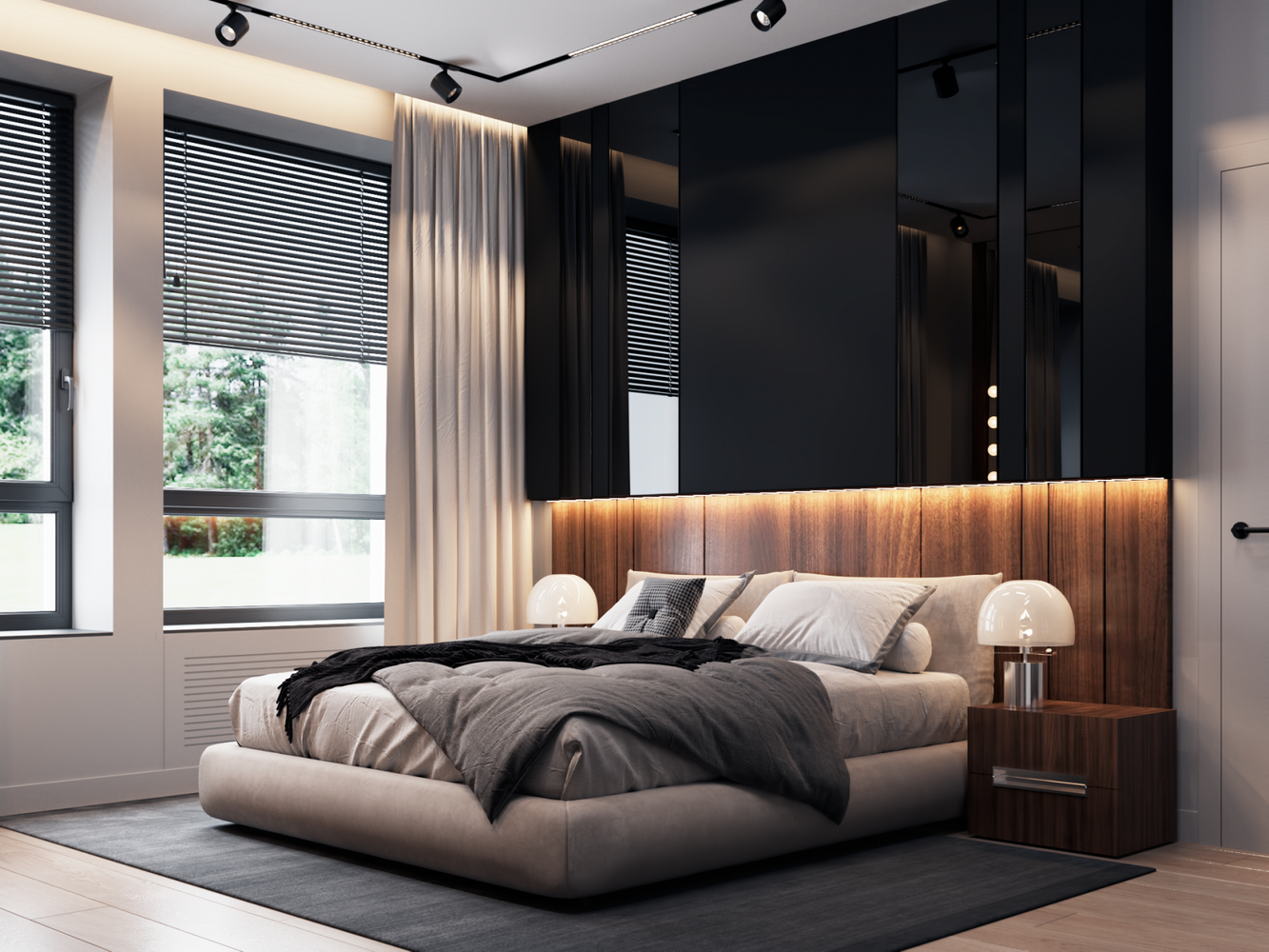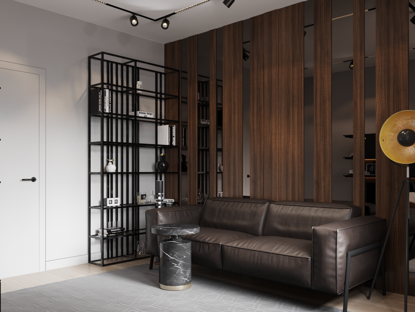 Ремонт с участием дизайнера. Используются современные решения: крашенные стены, инженерная доска, скрытые двери и плинтуса