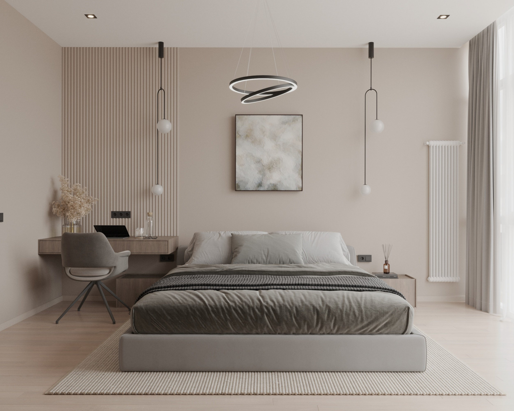 Природные элементы создают гармонию и спокойствие в интерьере, делая спальню идеальным местом для отдыха и релаксации после долгого дня. Разнообразие текстур и оттенков природных материалов добавляют интерьеру глубину и уют.