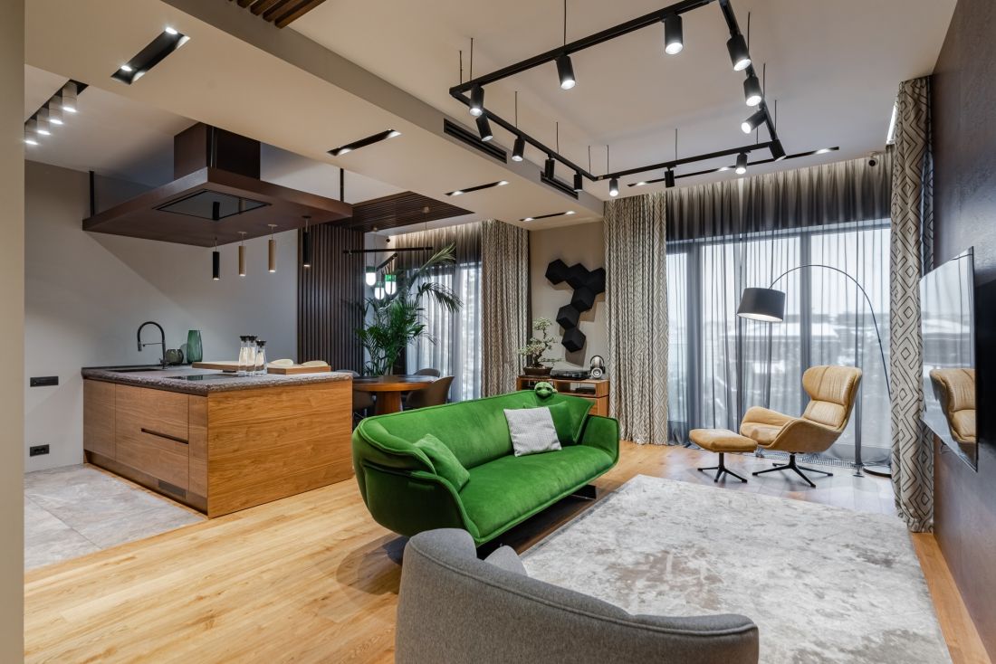 Ремонт с использованием лучших технических решений и материалов: крупноформатный керамогранит, массивная доска и камень